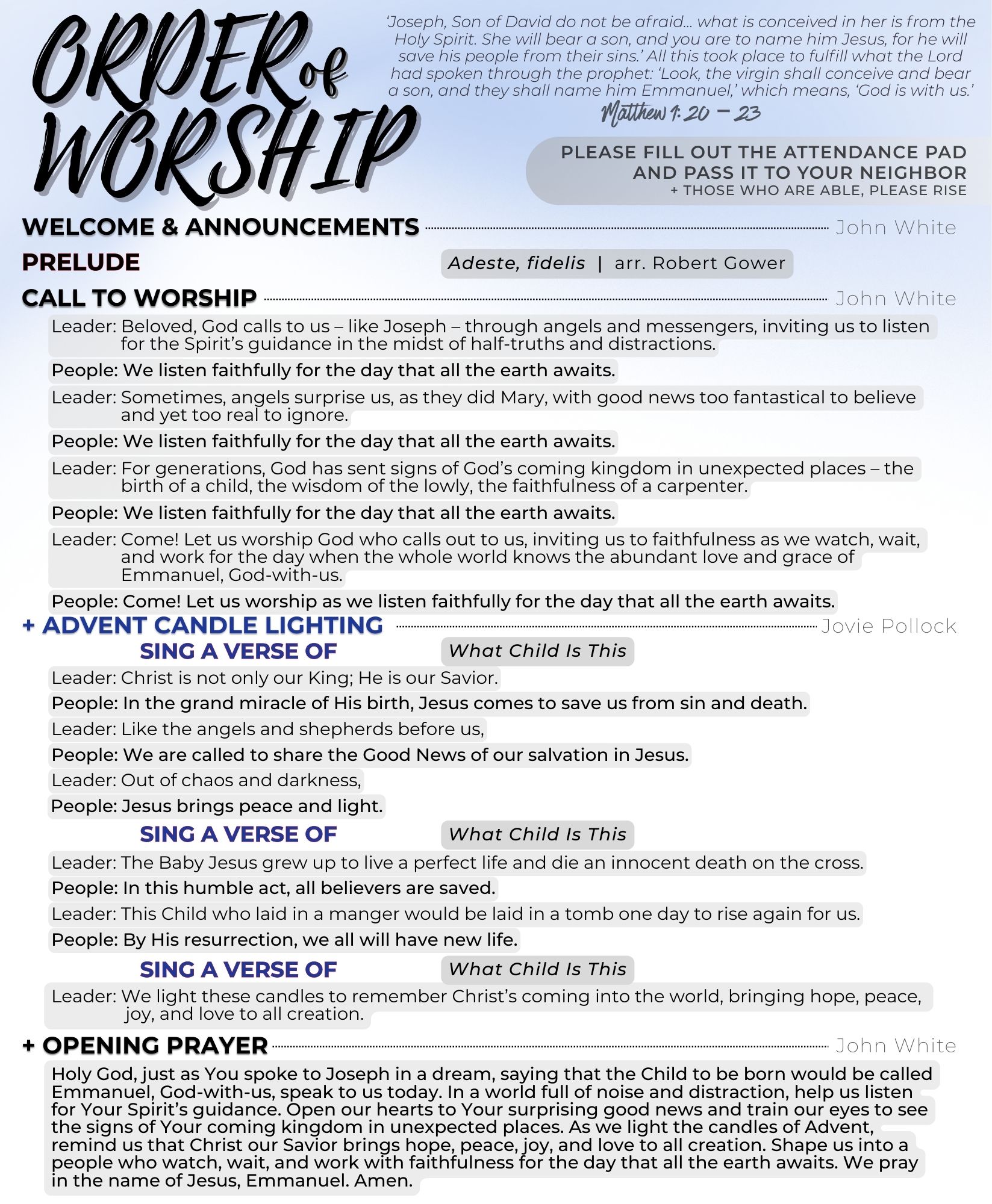 Sunday Sermon Questions December Welcome Sunday Worship Service Bulletin