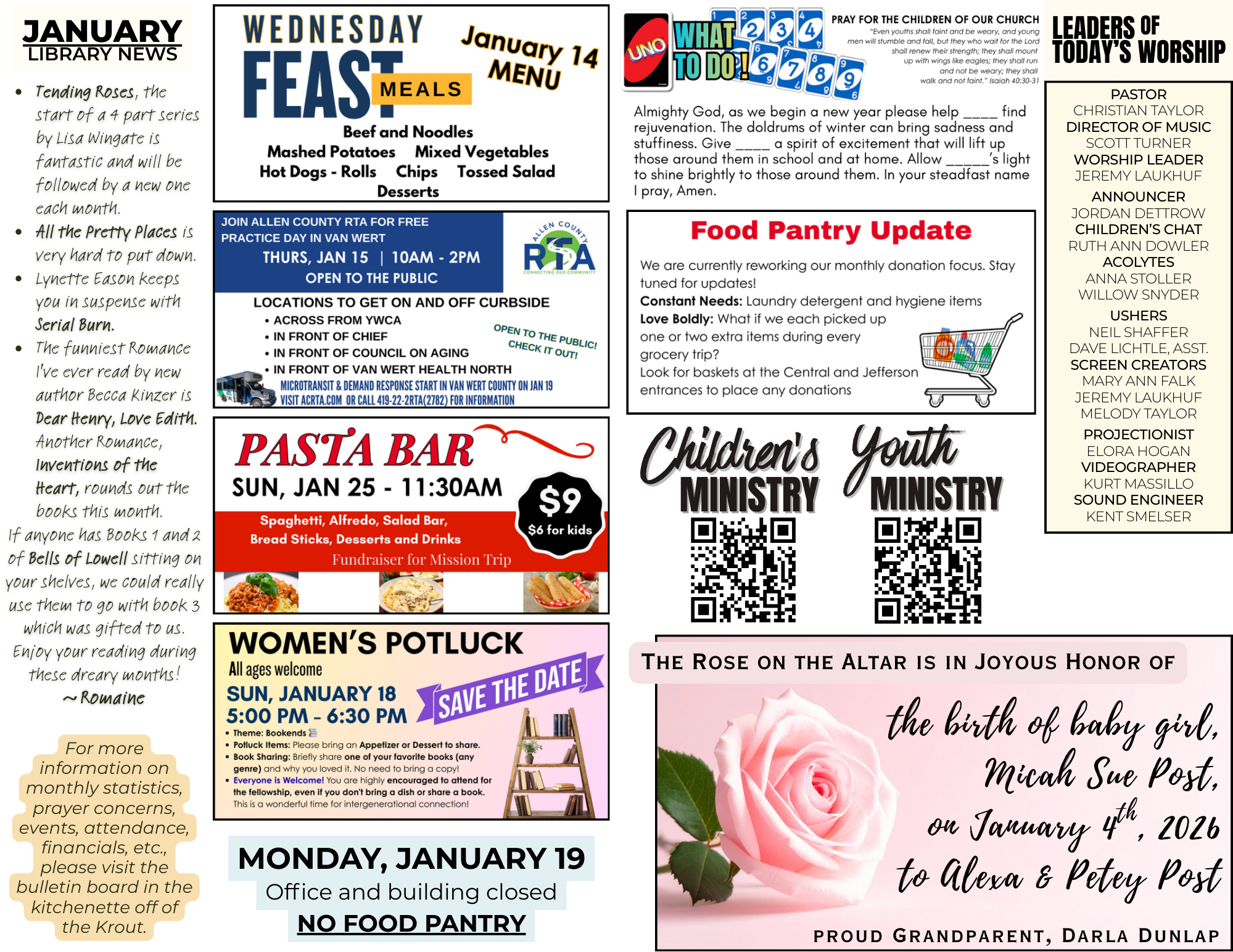 January Newsletter and Graphics Sunday Worship Service Bulletin